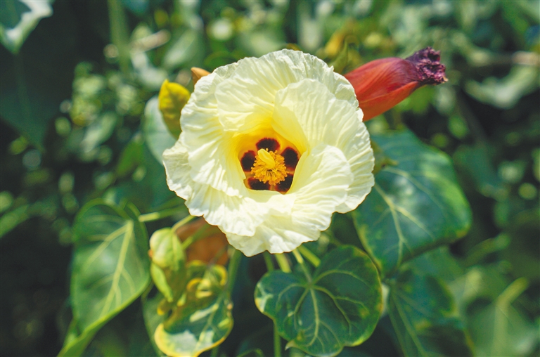后来,认识到种质资源保护的重要性,一代又一代棉花育种人来到海南寻找野生棉资源。2015年3月,一个偶然的机会,杜雄明在三沙市永兴岛上发现了长势旺盛的蓬蓬棉。通过与采自海南省东方市以及广东省湛江市硇洲岛的蓬蓬棉材料进行实验对比,他发现了海南蓬蓬棉的独特性。