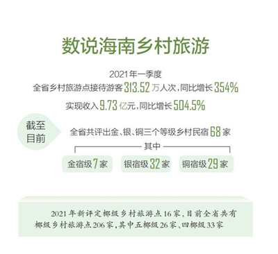 省旅文厅相关负责人表示,在乡村振兴战略大背景下,省旅文厅将继续通过椰级乡村旅游点评定、乡村旅游“后备箱”工程等多种方式,让更多农户共享到旅游发展红利,更好地推动海南乡村旅游发展,助力海南自由贸易港和国际旅游消费中心建设。