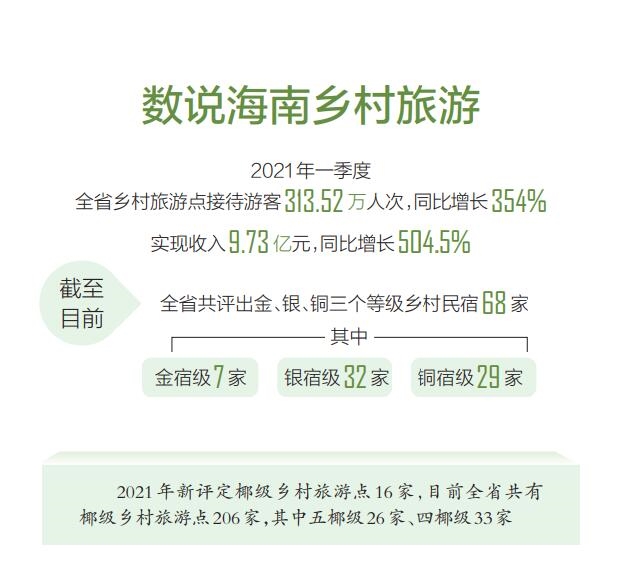 近年来,海南始终秉持“绿水青山就是金山银山”的生态理念,以创建全域旅游示范省为总抓手,“点、线、面”相结合,把全省作为一个大景区来打造。乡村旅游不仅成为我省旅游市场的一大亮点,还成为脱贫攻坚、乡村振兴的重要模式,让更多的海南百姓共享旅游发展红利。