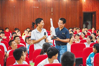 对此,海南省教育厅基础教育处处长韩小雨表示,教育行政部门鼓励我省中小学校通过开设特色校本课程,开展研究性学习项目、航天文化节、航天科普讲座、航天特色研学活动和创办航天科技创新社团等多种方式,将课堂教学与科普活动、校内教育与校外教育相结合,推动航天知识、航天文化、航天精神进校园、进课堂,在孩子们心里埋下航天梦想的种子,为国家航天事业和海南自贸港航天科技产业培养更多建设者和接班人。