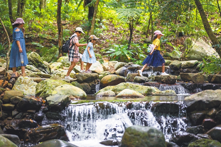 被誉为“三亚后花园”的呀诺达雨林,成为不少久居闹市的游客同家人朋友出游、休闲度假、放松心情的好去处,“踏瀑戏水”“高空滑索”“真人CS”备受游人青睐。得益于保存完好的森林植被,呀诺达雨林核心区负氧离子的含量均值为每立方厘米3万个,个别地方甚至高达每立方厘米12万个,是名副其实的“天然氧吧”,十分舒爽。