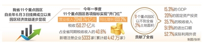 本报海口6月3日讯(记者傅人意)6月3日,海南日报记者从海南自由贸易港建设新闻发布会上获悉,我省11个重点园区自去年6月3日挂牌成立以来,园区经济效益逐步显现。今年一季度,11个重点园区各项指标实现“开门红”,营业收入2048.74亿元,同比增长133.2%;税收150.27亿元,占全省同期税收收入的40.6%;新增注册企业5333家(累计超4.42万家)。