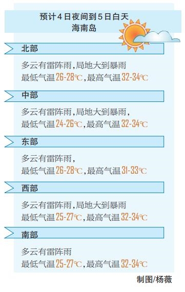 本报海口6月3日讯 (记者习霁鸿 通讯员刘爽 杨薇)省气象局6月3日17时00分解除高温四级预警:预计6月4日白天,海南省五指山以北地区37℃以上的高温范围将有所减小,全岛多云转雷阵雨,局地大到暴雨。