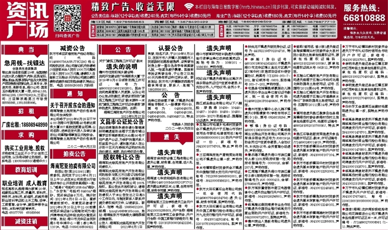 海南速七车贷网络科技有限公司(代码91460100MA5RDUFY7G)遗失营业执照正本、公章、合同专用章、财务专用章,声明作废。