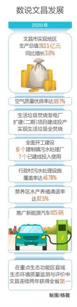 数据显示:2020年,文昌全年环境空气质量有效监测天数为366天,优良天数比例为99.7%,远超任务目标。