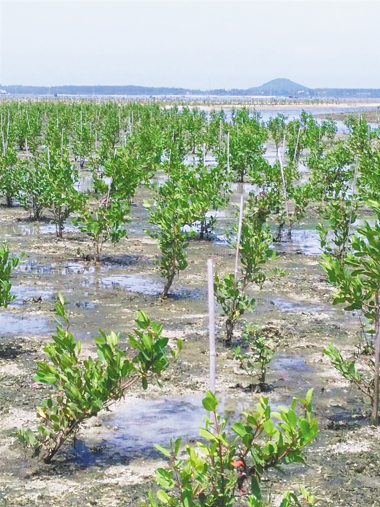 据介绍,2016年至2017年修复区域2009亩、种植红树林1350亩;2018年修复区域1036亩、种植红树林860亩;2019年修复区域200.2亩、种植红树林100亩;2020年修复区域424.8亩、种植红树林300亩;2021年计划修复区域3700亩,已修复450亩,种植红树林280亩;2022年计划生态修复3452亩。截至目前,共完成生态修复4624亩,共计种植红树林3393亩。