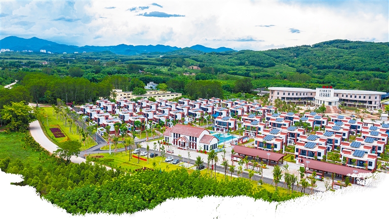 远处,群山耸立,层峦叠翠;近处,道路整洁,黎族风情民居与庭院错落有致;身旁,鸟语花香,孩童追逐嬉戏发出欢笑声。走进搬迁后的白沙牙叉镇高峰新村,眼前的景象让人仿佛置身于世外桃源。