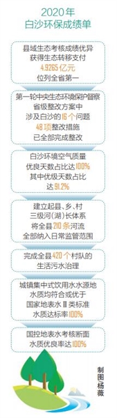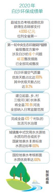 全力打好碧水保卫战。白沙着力提升中队小溪等城镇内河和重点流域环境质量,同时建立县、乡、村三级河(湖)长体系,将全县210条河流全部纳入日常监管范围,全面压实河长责任,启动“绿水行动”,严厉打击非法采砂等违法行为。此外,还集中开展饮用水水源地环境问题专项整治,进一步提升水源地生态环境质量。
