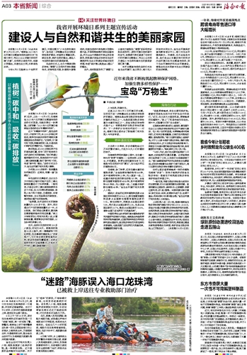 近年来我省不断构筑起物种保护网络, 加强生物多样性保护——~~~