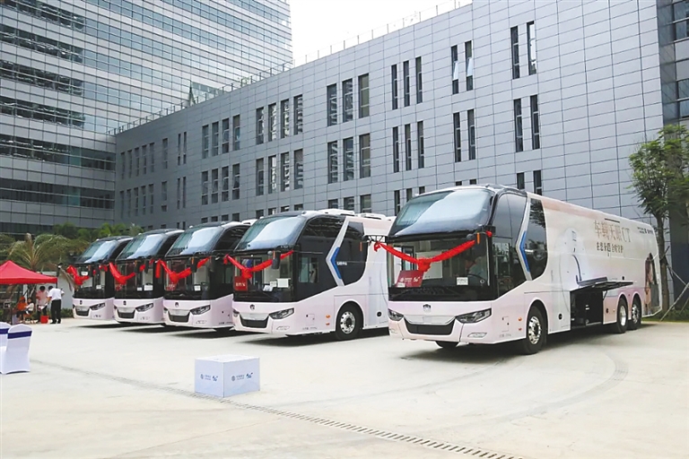 本报海口6月5日讯 (记者马珂 通讯员陈宗 欧燕燕)将来基层群众做CT检查不用再去大医院,在家门口的一辆公交车上就能完成。6月5日,由省卫生健康委员会主导的基于5G物联网的基层医疗卫生机构能力提升工程,在海口举行“5G车载CT车辆交接”仪式,首批共5辆车载CT车辆亮相。