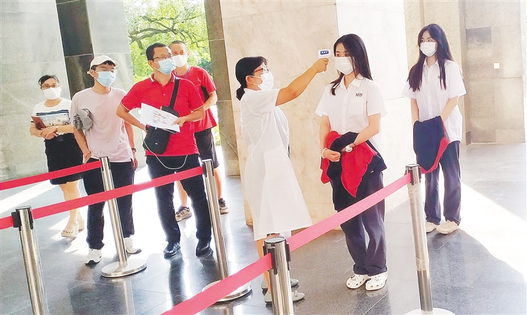 近日,海南中学开展2021年高考考务模拟演练,演练内容包括考生进入考点测温、身份验证、安检入场以及疫情防控等多个环节。