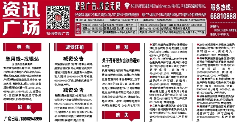 就海南高仕电脑有限公司被吊销营业执照我公司拟向海口市市场监督管理局申请注销事宜,定于2021年6月24日9点,在海口市海秀大道华侨新村G-13号海南湖海房地产开发有限公司会议室召开股东会议进行议定,请您参加。特此通知。