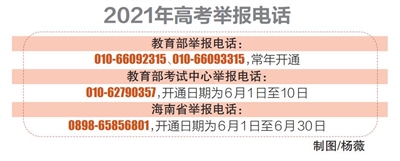 2021年海南省普通高考将于6月7日至10日举行。6月6日,海南日报记者采访了省考试局,并走访多个考点,了解疫情防控、考场布置、服务保障等考前准备工作。