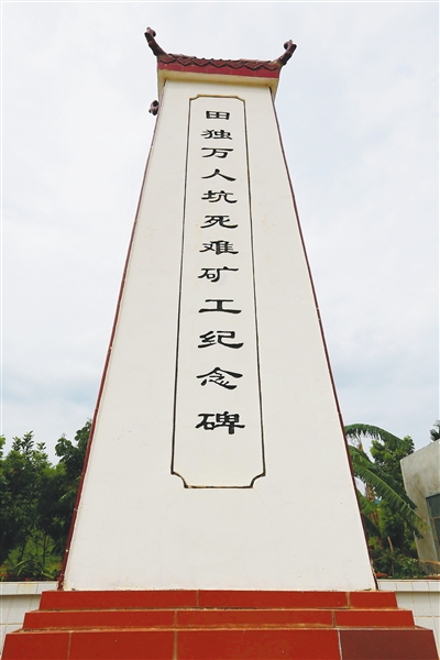 “老人们都把这座铁矿叫作红山矿,名字来源就是当年日本人杀了许多矿工,满山、满地的血红色,整座山都是血腥味,每天矿上都有劳工被打死、饿死、烧死,从早上到半夜,哭喊声不断。” 站在田独万人坑死难矿工纪念碑下,67岁的村民唐耀方神情黯然,他小时候常常听村里的老人讲述那段不堪回首的往事,并且铭记于心。