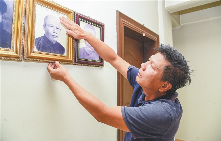 在陈玉军家中,一面墙上悬挂着陈英才的肖像。照片里,陈英才目光坚定,注视着远方。说起曾祖父,陈玉军充满自豪:“他个性刚毅憨直,无私无畏,爱打抱不平,急人之难,深受群众爱戴。”
