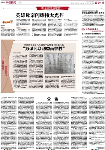革命烈士王器民在遗书中五嘱妻子继承其志~~~