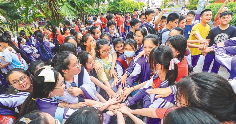 交上语文科目答卷,海口实验中学考生小林自信地走出考场:“我们一定会调整好状态,积极应对各个科目考试,不辜负每一个关心支持我们的人!”