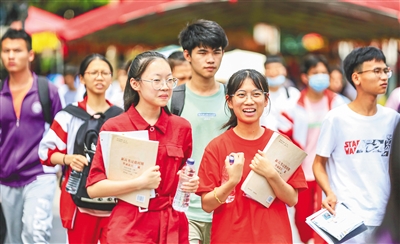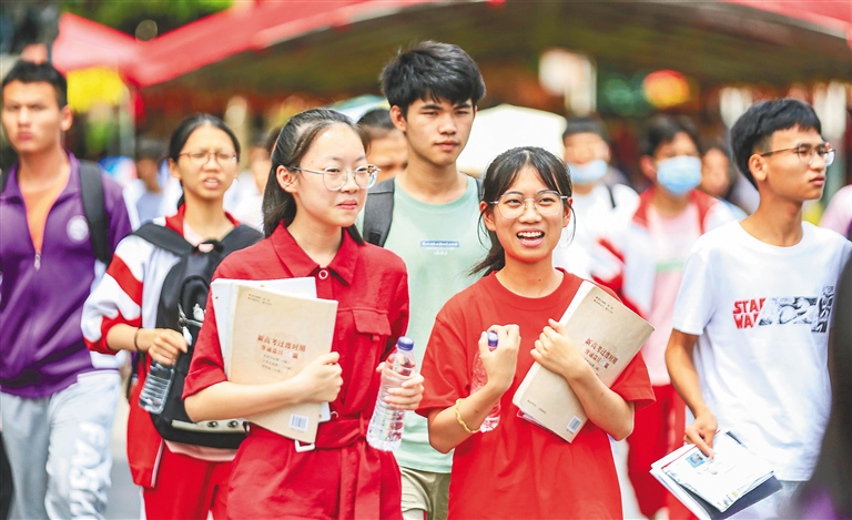 6月7日中午,在儋州市第二中学考点,语文科目考试结束后,考生自信从容走出考场。 本报记者 陈元才 摄