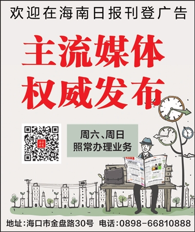 海南日报报业集团旗下媒体: 海南日报 |南国都市报 |南海网 |南岛晚报 |证券导报 |法制时报 |海南农垦报 返回首页