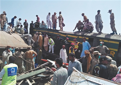 巴基斯坦南部信德省7日发生两列客运列车相撞事故,造成至少36人死亡、超过70人受伤。 新华社/美联