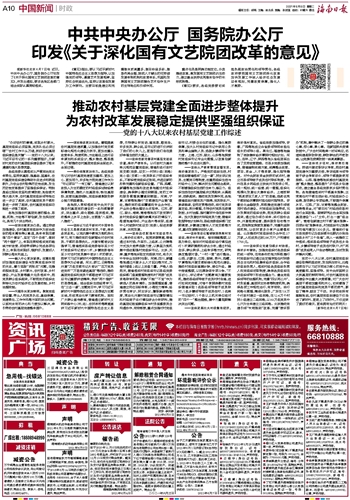 中共中央办公厅 国务院办公厅 印发《关于深化国有文艺院团改革的意见》