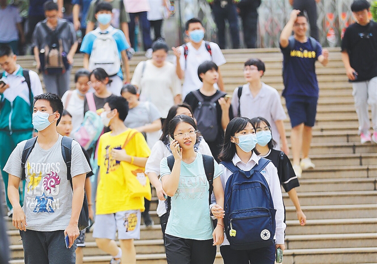 6月8日,海南华侨中学高中部考点,考生考完英语科目后轻松走出校园。本报记者 张茂 摄