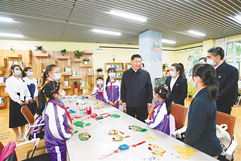 随后,习近平来到西宁市城西区文汇路街道文亭巷社区,听取他们加强基层党建、完善基层治理、推进民族团结进步工作汇报,同现场办事群众交谈。习近平先后走进社区书画室、幸福食堂、康复室、舞蹈室、阅览室,观看退休人员书画练习、歌曲排练,了解社区向老年人提供餐饮、健康服务,向青少年提供公益性课后托管服务等做法。在社区广场,习近平同围拢来的群众亲切交流。他指出,要把社区作为民族团结进步创建的重要阵地,发扬各族人民手拉手、心连心的好传统,共同建设民族团结一家亲的和谐家园。社区治理得好不好,关键在基层党组织、在广大党员,要把基层党组织这个战斗堡垒建得更强,发挥社区党员、干部先锋模范作用,健全基层党组织领导的基层群众自治机制,把社区工作做到位做到家,在办好一件件老百姓操心事、烦心事中提升群众获得感、幸福感、安全感。要牢记党的初心使命,为人民生活得更加幸福再接再厉、不懈奋斗。