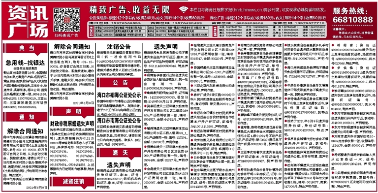 ●符海青(身份证460031196907154479)遗失农村土地承包经营权证书,经营权编号:469026102204020026J,流水号020566,特此声明。