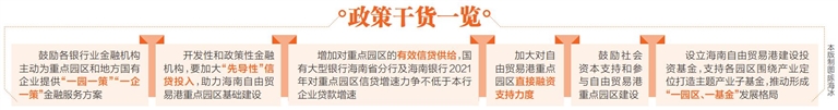 同时,要加大对自由贸易港重点园区直接融资支持力度;鼓励社会资本支持和参与自由贸易港重点园区建设;引导地方金融组织加大对重点园区的支持力度;支持自由贸易港重点园区跨境贸易投资自由化便利化。