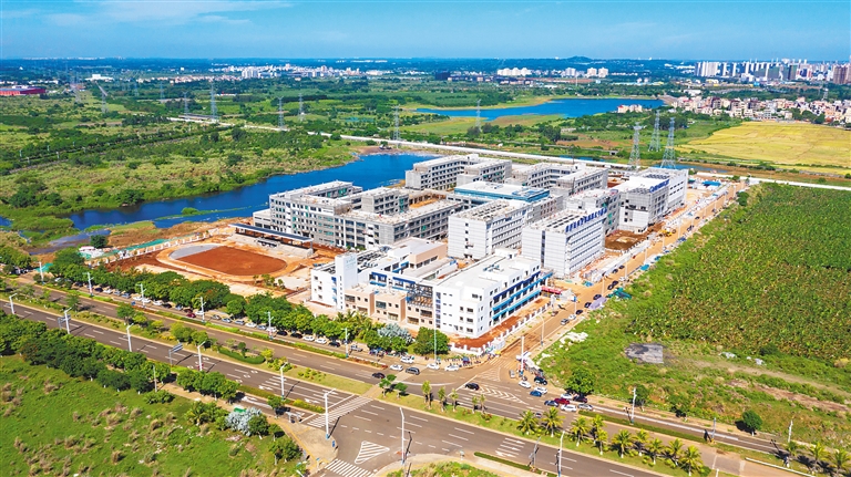 6月15日,俯瞰位于海口高新区美安生态科技新城的上海世外附属海口学校。据介绍,上海世外附属海口学校是海口市政府主办,委托均瑶集团所属上海世外教育集团全面管理的公立学校。目前,该学校正加紧室内外装修,预计本月底交付使用。本报记者 李天平 摄