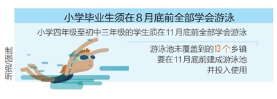 本报海口6月15日讯 (记者陈蔚林)6月15日在海口召开的全省普及中小学生游泳教育2021年第三次视频推进会要求,全省各小学的毕业生须在8月底前全部学会游泳,小学四年级至初中三年级的学生须在11月底前全部学会游泳。目前游泳池还未覆盖到的13个乡镇,要在11月底前建成游泳池并投入使用。