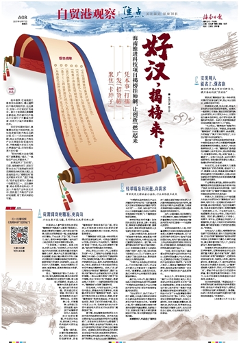 聚焦“卡脖子”广发“招贤帖”凭本事“打擂”海南推进科技项目揭榜挂帅制,让创新“燃”起来~~~