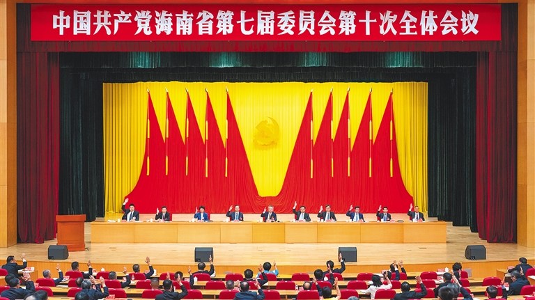 本报海口6月18日讯(记者况昌勋)中国共产党海南省第七届委员会第十次全体会议于2021年6月17日至18日在海口召开。全会号召,全省各级党组织和广大党员干部要更加紧密地团结在以习近平同志为核心的党中央周围,大力弘扬党的优良传统和作风,解放思想、敢闯敢试、大胆创新,以更加奋发有为的精神状态,打造高质量发展新样板,为加快推进海南全面深化改革开放和中国特色自由贸易港建设作出新的更大贡献!