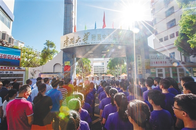 在南开大学附属中学儋州市第一中学初一年级、高一年级,儋州市第二中学初一年级开设的清华附中创新实验班,今年秋季学期将招生。南开大学附属中学儋州市第一中学初一年级(4)班学生郑宸达参加揭牌活动后,暗下决心:“努力学习,2年后考上高一年级创新实验班,享受清华附中带来的优质教育资源,为考上名牌大学而奋斗。”