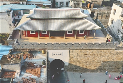 县志寥寥数语,对那次重修鼓楼没有更多记载。而如今仍立于鼓楼北侧拐角处的一块石碑,除了碑额《重建鼓楼记》与落款“康熙三十四年岁次乙亥”依稀可见外,其他文字几百年来被风吹日晒雨淋,肉眼已经极难分辨。