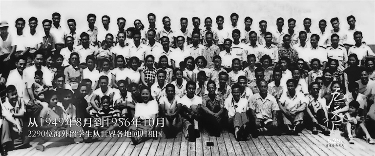 影片中还记录了一组让人震撼的数字:1950年2月,朱光亚、王希季归国;1950年8月,邓稼先归国;1950年10月,吴大昌归国;1951年,巫宁坤、许渊冲归国;1953年,查良铮夫妇归国;1955年,郑哲敏归国……从1949年8月到1956年10月,新中国成立前后,2290位海外留学生从世界各地回归祖国。