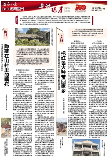 | 海南日报 寻访琼崖革命老区 022 2021-06-211 2021年06月21日 星期一 |