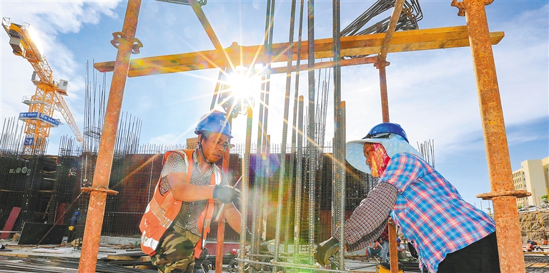 近日,在洋浦经济开发区,由中国能建葛洲坝集团第二工程有限公司投资建设的洋浦国际航运中心大厦项目,正在进行基础结构施工。