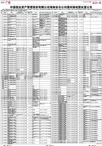 中国信达资产管理股份有限公司海南省分公司债权催收暨处置公告