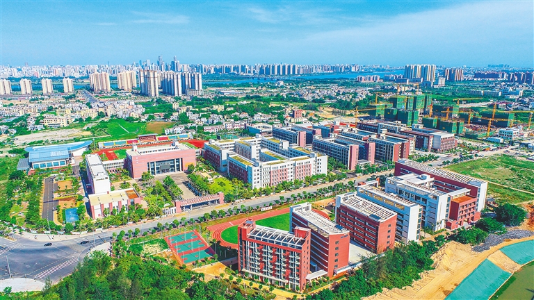 日前,俯瞰位于海口江东新区的北师大海口附属学校二期(小学部)项目。目前,该项目已经完工,验收通过后今年9月可投入使用。据了解,北师大海口附校二期项目毗邻已建成的高中部,总投资近1.35亿元,办学规模1710人,36个班(2个备用)。本报记者 张茂 摄