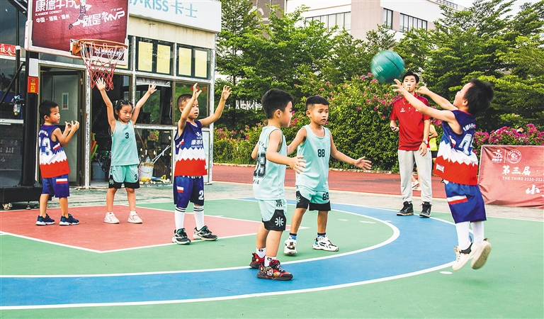 6月21日,在儋州市夏日广场举行第三届儿童小篮球比赛,来自全市16家幼儿园约140名小朋友参加了本次比赛。特约记者 吴文生 摄