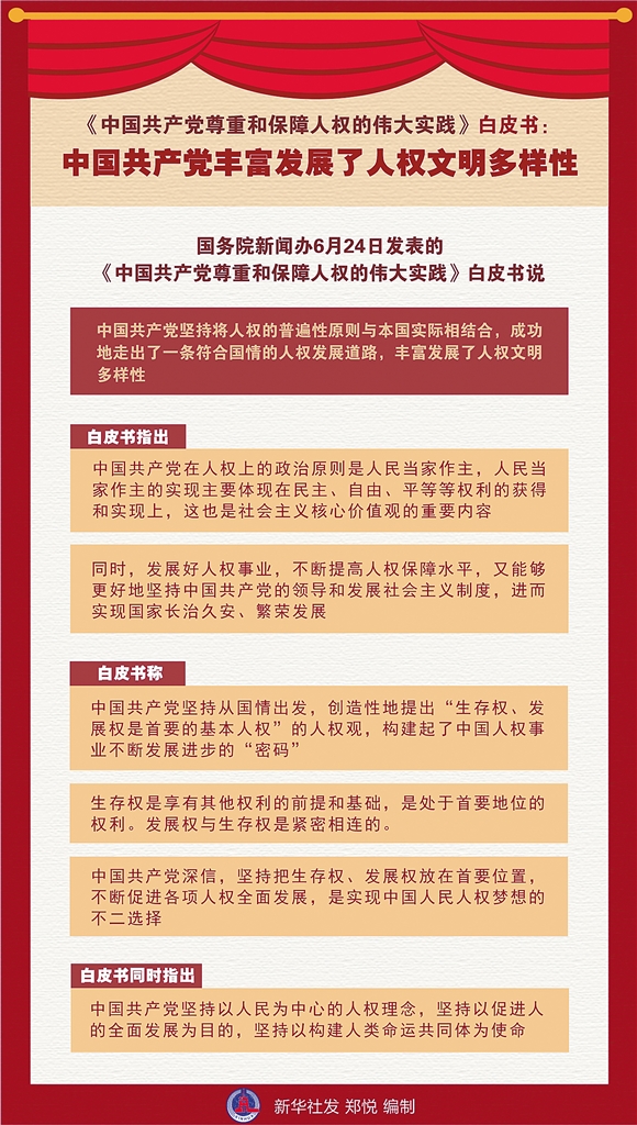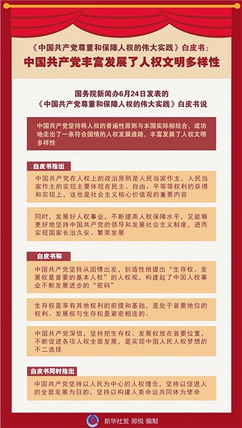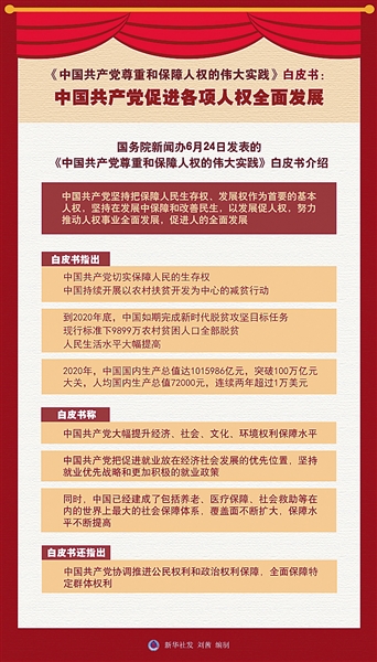国务院新闻办发表 《中国共产党尊重和保障人权的伟大实践》白皮书