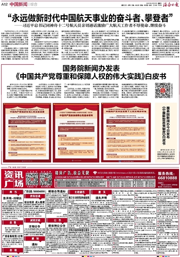 国务院新闻办发表 《中国共产党尊重和保障人权的伟大实践》白皮书