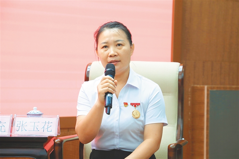 海口市龙华区金贸街道玉沙社区党支部书记、居委会主任张玉花,自2006年成为玉沙社区的一名普通工作人员以来,她兢兢业业,扎实工作,坚持以党建引领社区服务创新,打造“社工+义工”志愿者服务模式,组建青年干部治安巡逻志愿者服务队,为促进文明社区建设作出积极贡献。