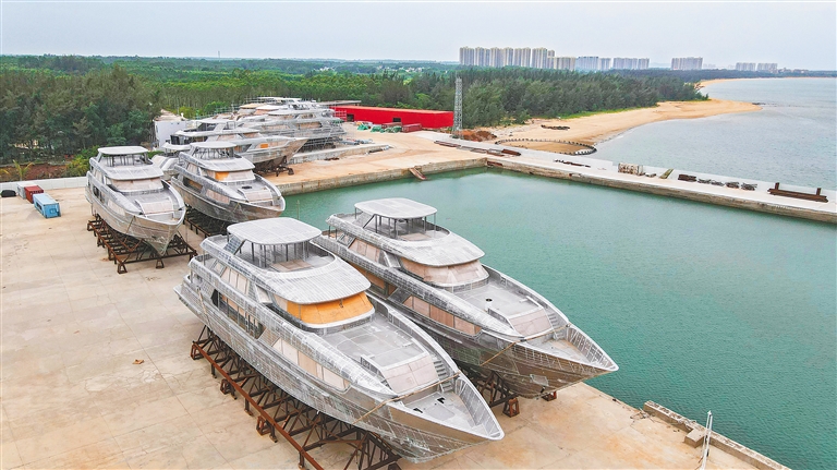 6月23日,位于临高县金牌西港的海南海洋装备产业先行区内,游艇制造商“锦龙超级游艇”正在对旗下产品进行总装。