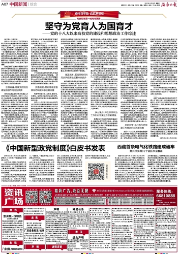 《中国新型政党制度》白皮书发表