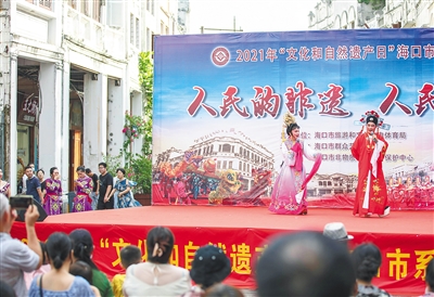 旅游与“非遗”的融合让“见人见物见生活”的非遗传承保护更具活力,也赋予旅游更为蓬勃的生命力,从而让来海南的游客能够更深层次、多维度地感知多彩的本土特色文化。在城市街区,非遗成为展示海南文化的重要载体。每逢节假日,海口骑楼老街迎接着来自全国各地的游客,作为国家级非物质文化遗产的琼剧和海南公仔戏是骑楼老街春节必备的文化盛宴。