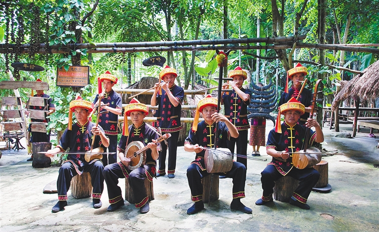 非物质文化遗产作为文化遗产中的活态部分,凝结、保留和传递着一个民族的历史记忆。海南的非遗资源极具海岛特色,又呈现海陆相接、多元共生的特点,具有极为丰厚的文化内涵。海南非遗文化众多,民间文学类有琼侨歌谣、海南谚语(临高渔谚)等省级非遗;传统音乐类有儋州调声、崖州民歌、疍歌、海南八音器乐等国家级、省级非遗;传统舞蹈类有黎族打柴舞、老古舞、海南苗族盘皇舞、盅盘舞等国家级、省级非遗;传统戏剧类则有木偶戏、琼剧、海南公仔戏等国家级、省级非遗;传统技艺类有黎族原始制陶技艺、黎族传统纺染织绣技艺、海盐晒制技艺、文昌鸡养殖与烹调技艺等国家级、省级非遗;民俗类也有黎族三月三节、南海航道更路经、祭祀兄弟公出海仪式、冼夫人信俗、府城元宵换花节等国家级、省级非遗。