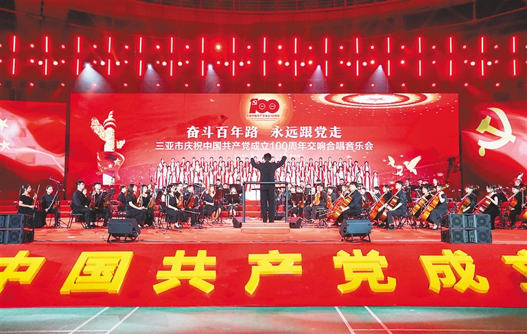 本报三亚6月27日电 (记者徐慧玲)百年征程波澜壮阔,百年初心历久弥坚。6月27日晚,三亚市庆祝中国共产党成立100周年交响合唱音乐会在三亚技师学院体育馆举行。