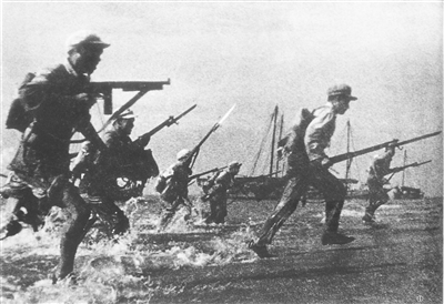 1950年4月16日19时30分,随着第四野战军15兵团指挥部“起航”一声令下,三颗红色信号弹同时升空。渡海作战兵团第一梯队共2万余人,分乘500多只战船,分成东路、西路两个编队同时起渡。40军所部1.87万人、43军所部6968人自雷州半岛出发,在琼崖纵队的接应下,成功地摧毁了国民党军精心构造的海陆空立体防线,于海口以西至临高角一线强行登陆。